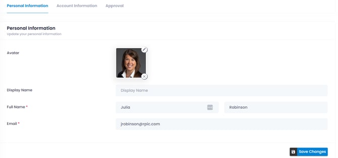 • Whenever you wish to view or change Personal or Account information, navigate to the Personal Settings page by clicking on the My Profile option. From the Personal Information pane you can update your Avatar and Display Name. This display name will follow you around the system, if you go by a different name other than your legal name, this is the spot to update!