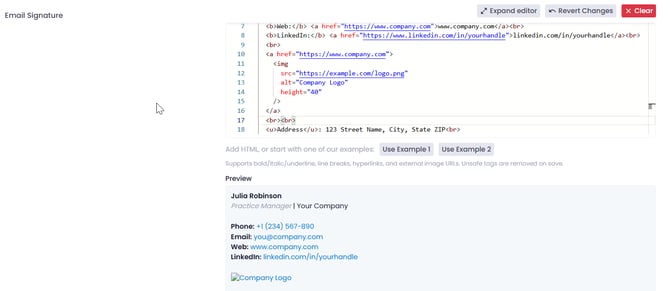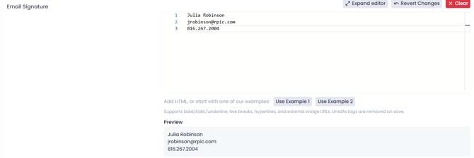 - Alternatively, if you do not want to utilize the templates, you can simply type the information into the editor space i.e. Name, Phone, email and you can preview the layout in the box below and adjust as necessary.