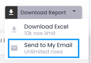 The traditional Download to Excel option continues to work as it does today and is best for smaller datasets. The new Send to My Email option is designed for larger exports and removes previous row limits by running the download in the background and delivering the full file by email once it’s ready.