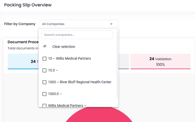 You can now filter the Packing Slip Overview by Location and Company to better understand processing volume and performance for specific operational areas.