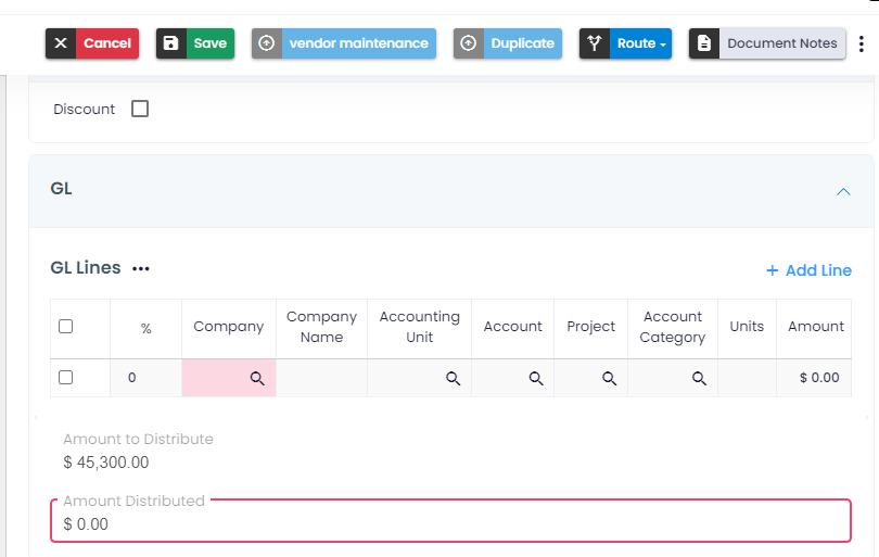 - The tabbing functionality has been enhanced to streamline the process for end users to efficiently fill out GL lines.