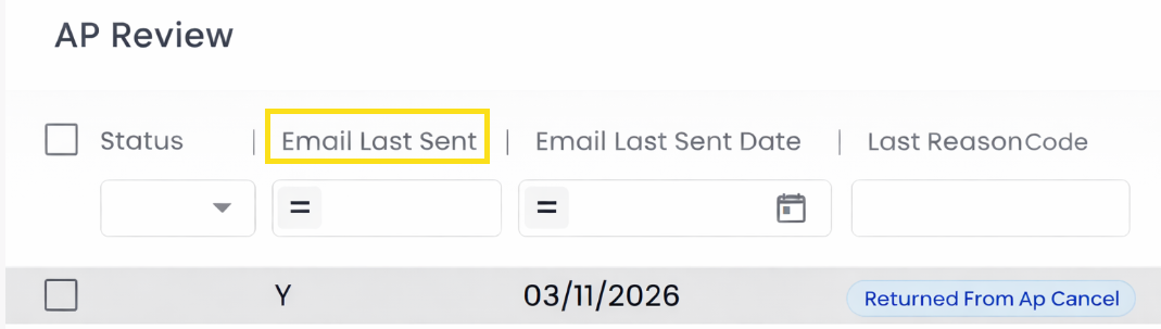 A new optional “Email Sent” column is available to help users quickly identify whether an email has been sent from an invoice without opening Document Notes, reducing extra clicks during processing.